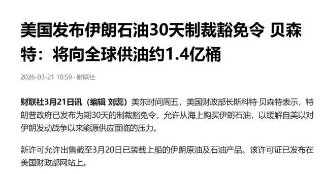 美国财政部长贝森特放话,特朗普政府已发布为期30天的制裁豁免令,允许从海上购买伊朗石油。