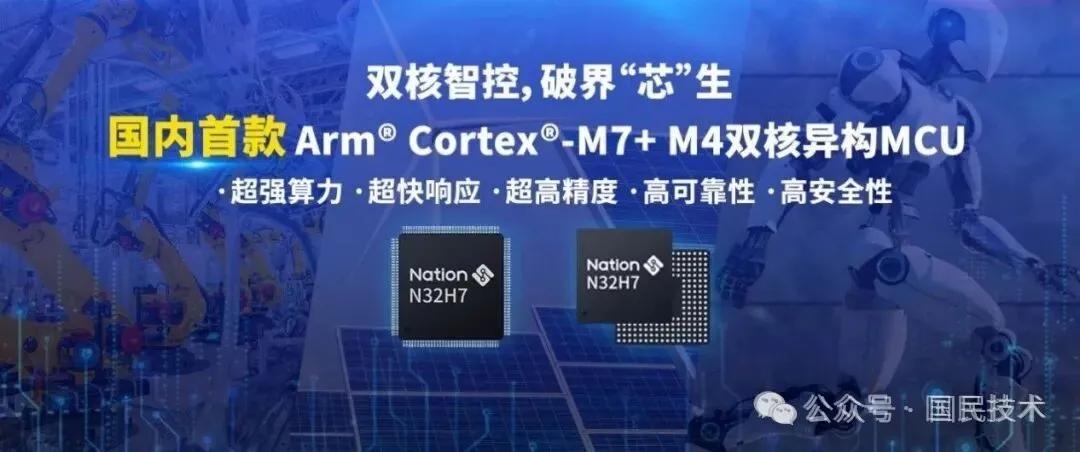MCU作为“分布式神经节点”,负责实时协调关节运动、处理多传感器数据,并执行复杂的动作算法,是实现精准、柔顺运动的基础。国民技术N32H7系列MCU凭借多核异构架构与超高主频,提供强大算力与实时响应能力,满足人形机器人对复杂控制与高同步性的严苛要求。其内置的CORDIC协处理器能够高效完成运动学涉及的三角/坐标变换等数学计算,显著释放CPU负载。